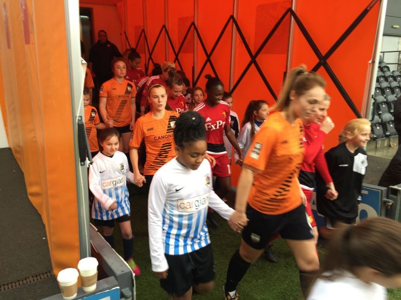 In recognition of their efforts the Brent girls squad were invited to meet the Bees players in the tunnel before the game and accompany them onto the pitch for the pre-match handshake and complete an unforgettable day for the young Brent players. Brent coach Chris Ampofo commented: “I am so proud of the girls. They showed great spirit and played some good football. It was lovely to see them on the pitch with the First Team girls. I’d like to say a big thank you to the London Bees for giving them that experience.”